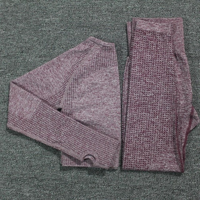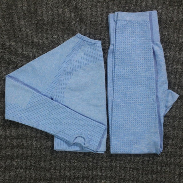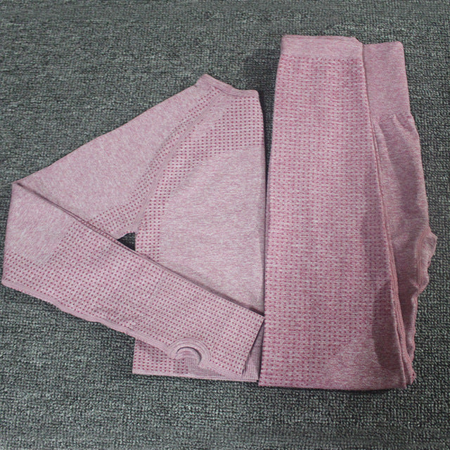 2pcs/set Vital Women Sport Suit Yoga Set Gym Workout Clothes Long Sleeve Fitness Crop Top + High Waist Energy Seamless Leggings